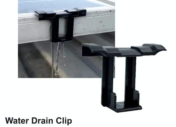 The Plastic Water Drain Clamp is a specialized accessory designed for photovoltaic (PV) solar panels. It is mounted along the edge of the solar panel frame to guide water flow and ensure proper drainage. This clamp effectively clears water, mud, and dust away from the panel edges, preventing accumulation and maintaining the cleanliness and efficiency of the solar panels. Ideal for both rooftop and ground-mounted installations, it ensures better longevity and performance of the PV modules.